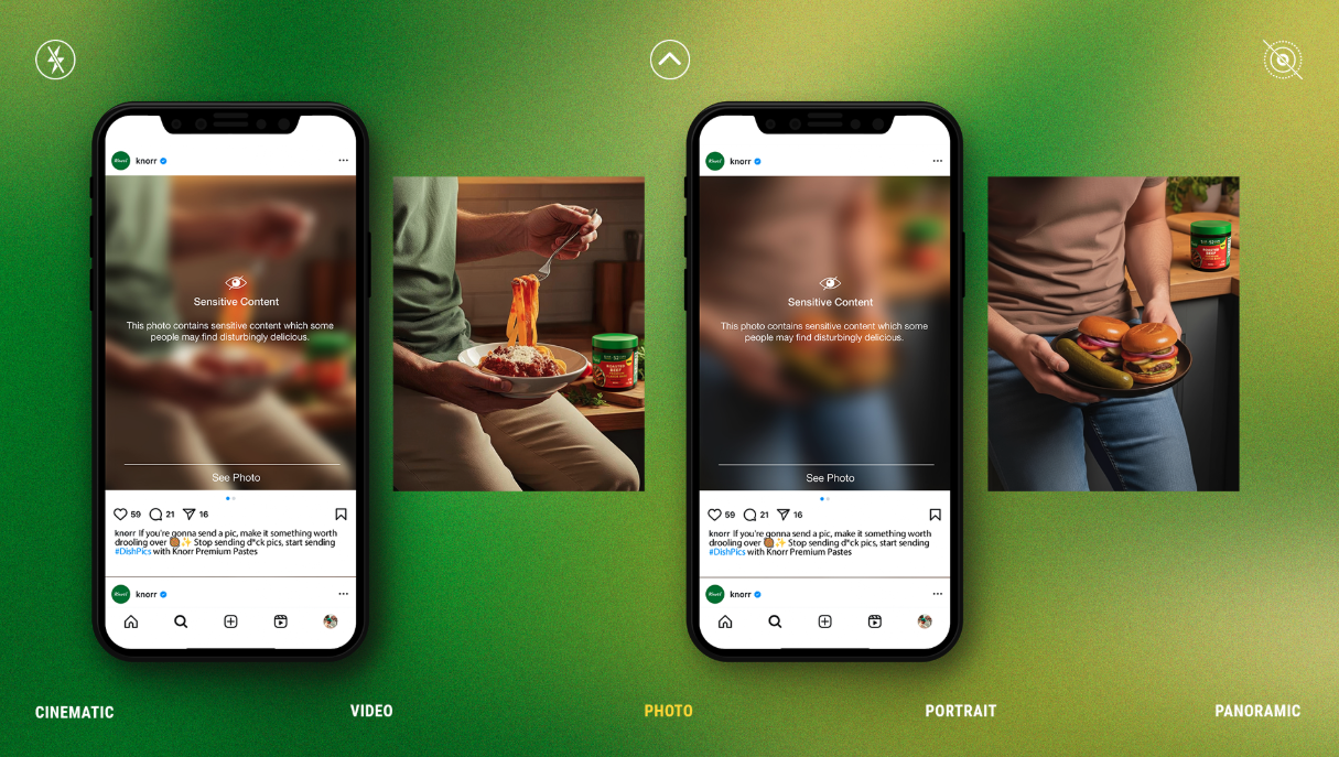 So we offered a simple upgrade. Instead of unsolicited d*ck pics, Knorr introduced Dish Pics. By sliding crave-worthy, flavor-packed dishes into the dating conversation, we proved one thing: a perfectly cooked meal is way hotter than an explicit selfie. To spread the word, we partnered with a chef-influencer known for serving sharp takes alongside seriously good recipes.